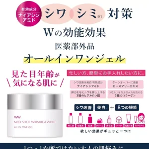 Meishoku Medi Shot Wrinkle is a powerful anti-aging serum that targets fine lines and wrinkles to reveal smoother, more youthful-looking skin. Formulated with collagen, hyaluronic acid, and retinol, this serum helps to improve skin elasticity, hydration, and overall texture. The lightweight formula absorbs quickly into the skin, leaving it feeling soft and supple. Incorporate Meishoku…