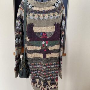 Stay warm and stylish in this charming Free People Nordic Fair Isle Sweater Dress, perfect for the colder months. Made with a soft wool blend, this tunic-length sweater dress features an eye-catching eagle motif across the back and front, giving it a rustic, bohemian vibe. The Fair Isle-inspired pattern adds a cozy, wintry touch with…