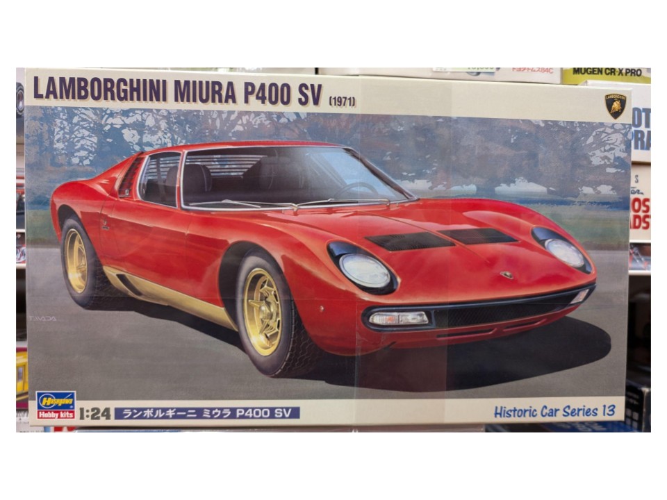 The Hasegawa 1/24 Scale LAMBORGHINI MIURA P400 SV 1971 Plastic Model Kit is a detailed replica of the iconic Italian sports car. This kit features high-quality plastic parts, accurate detailing, and decals for a realistic finish. It’s perfect for model enthusiasts and Lamborghini fans.