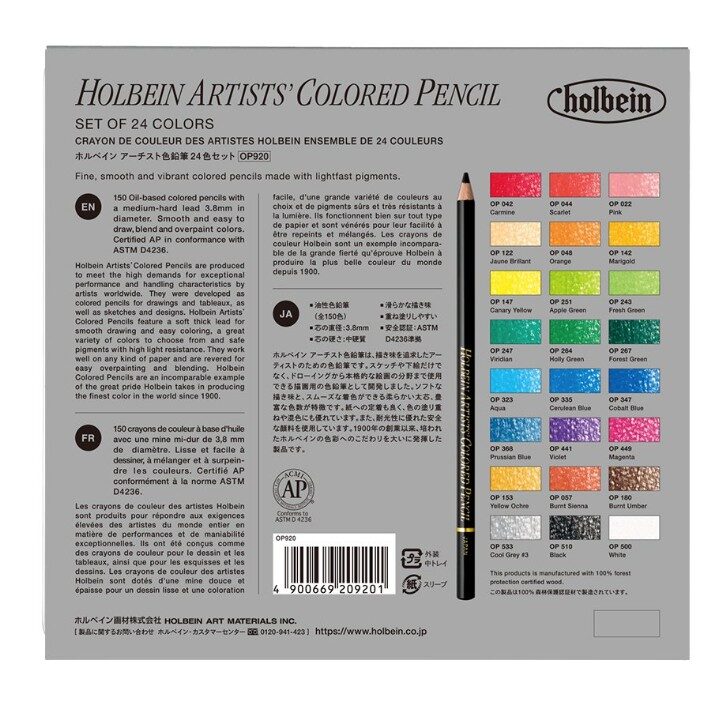 Holbein Artists’ Coloured Pencils 24 Colour Set OP920 delivers vibrant, smooth colour application that brings your artwork to life. Crafted with advanced Japanese formulas and premium pigments, these pencils offer superior blendability and rich, lasting colour compared to ordinary sets. The finely milled cores ensure precision and durability, making them perfect for both detailed work and bold strokes.