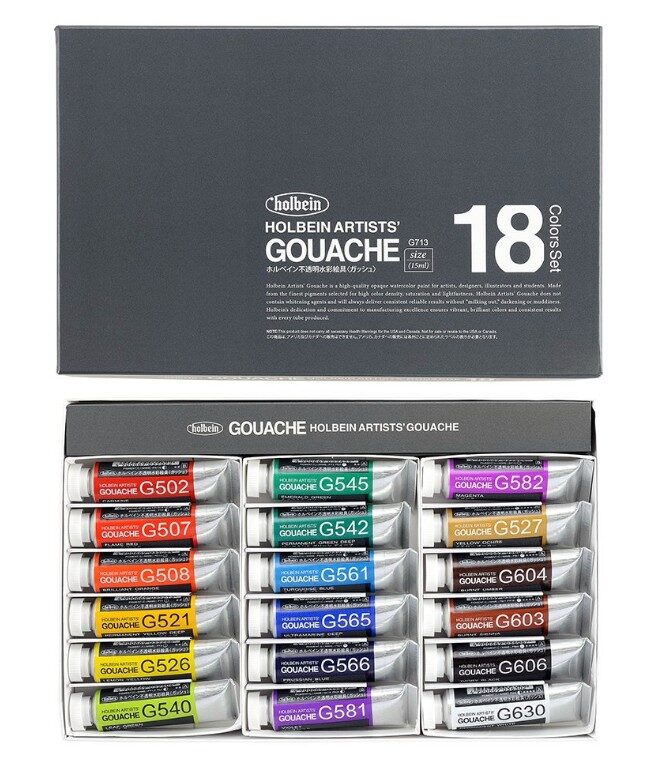 Holbein Gouache Opaque Watercolours 15ml G713 18 Colour Set
