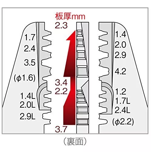 (The dice part is stepped and thinly finished.). The coating dies are also compatible with circular crimping. Workability is improved by gradually thinning the plate thickness from the tip to the base of the die from 2.6mm to 2.1mm.