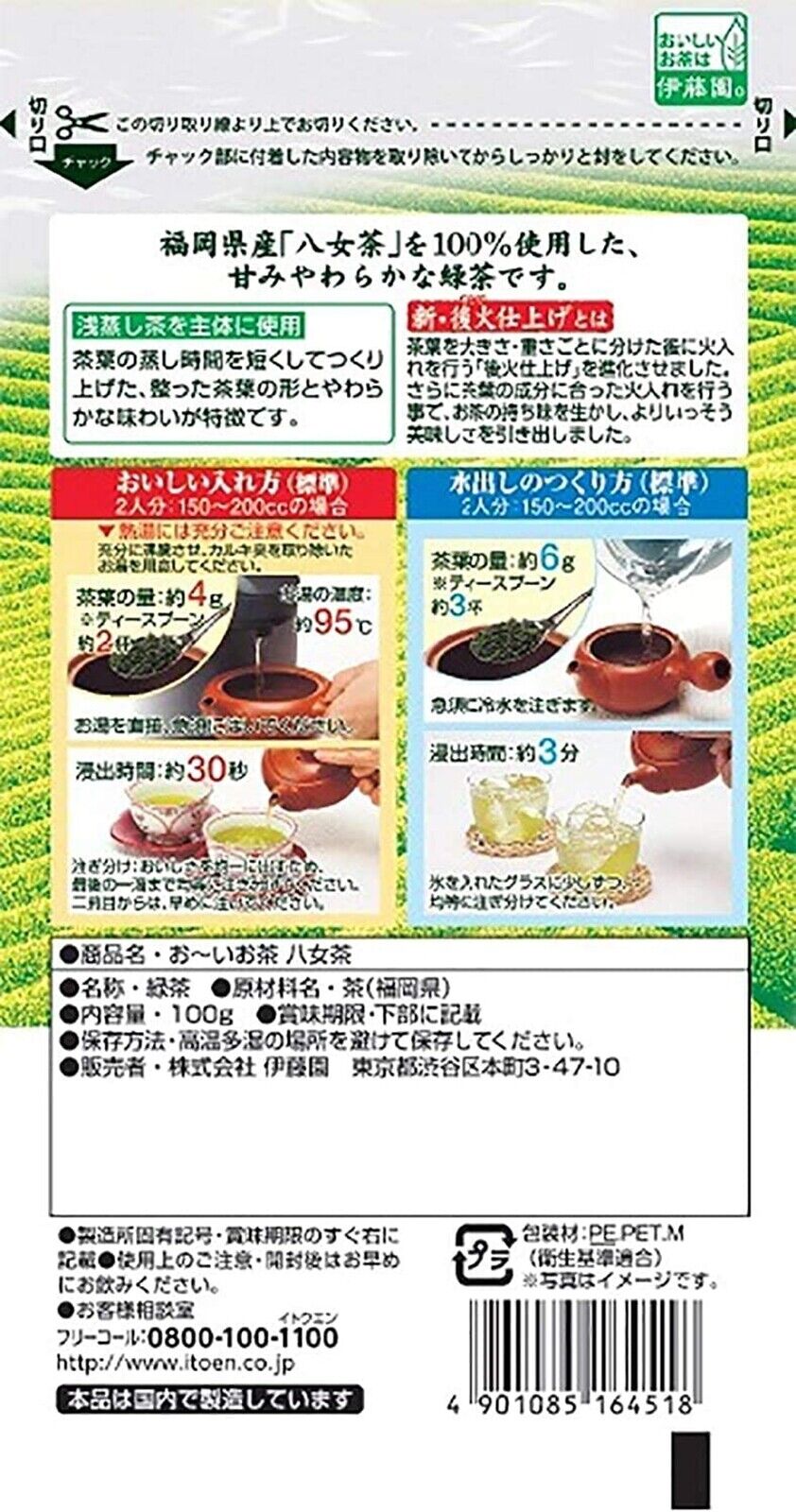 Delight in the smooth, mellow flavor of ITO EN’s Oi Ocha Yame Tea, made from premium green tea leaves grown in Yame, Fukuoka. Known for its delicate sweetness and full-bodied taste, this 100g pack delivers the refined character of Yame green tea, which is celebrated for its high quality and rich aroma. Perfect for those who appreciate authentic Japanese tea.