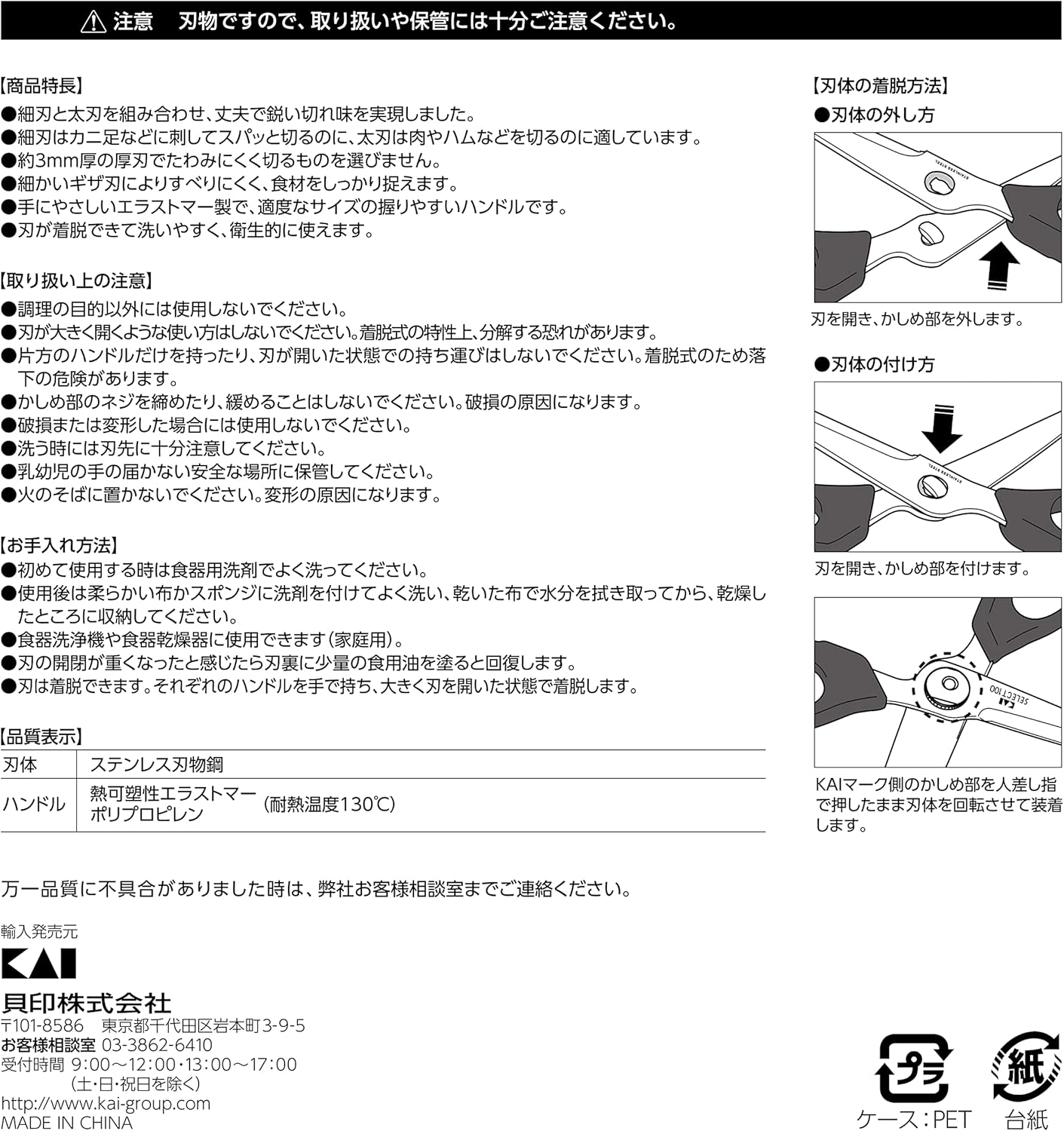 The KAI Select 100 Kitchen Shears come directly from Japan and are presented in original Japanese packaging. Please note that the accompanying manual is in Japanese.
