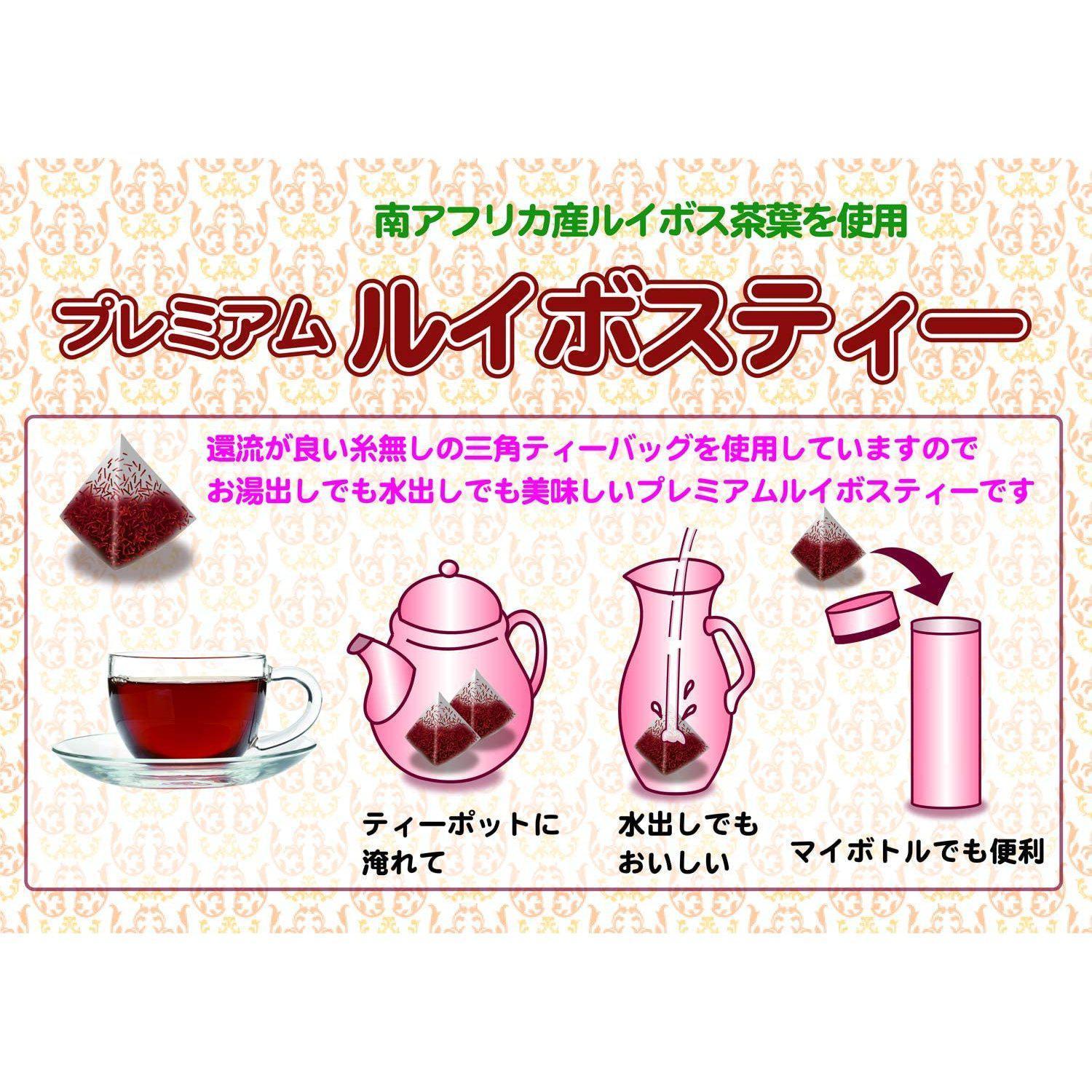 Enjoy the deep, smooth taste of Kunitaro Premium Rooibos Tea, made from high-grade South African tea leaves. This caffeine-free herbal tea is packed with polyphenols (110mg per liter) and comes in high-extraction triangular tea bags for easy brewing.