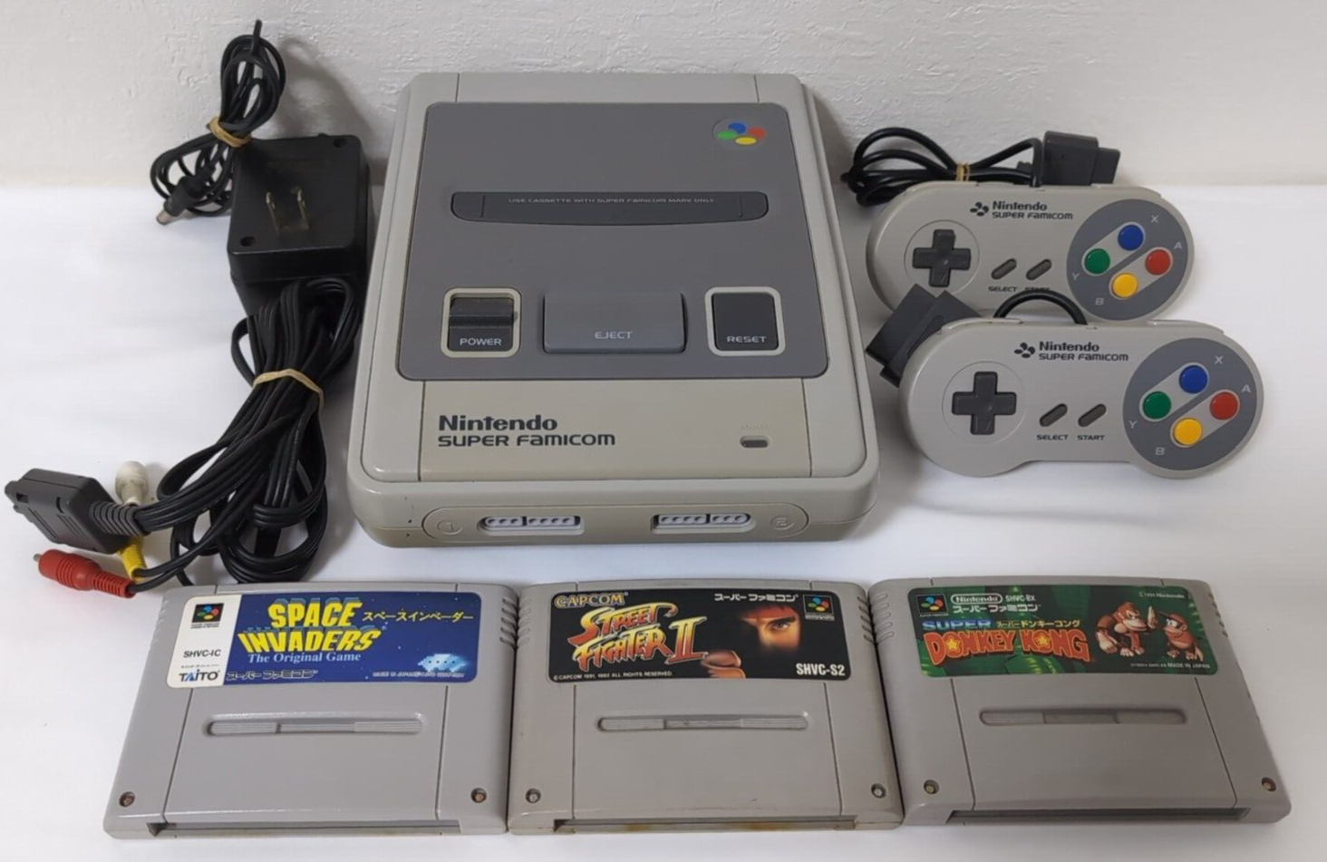 Nintendo Super Famicom Console w/ 2 Pads & Cords NTSC-J 3 Comes With 3 Games