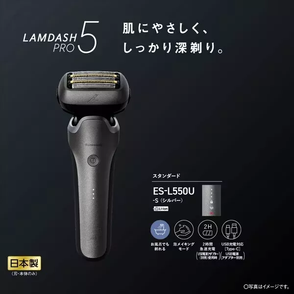 The Panasonic ES-L550U-S shaver LAMDASH PRO features 5 ultra-sharp blades for a close and comfortable shave. This Japan-imported shaver is designed to provide a smooth and efficient shaving experience. With its AC100-240 voltage compatibility, this shaver is perfect for use worldwide. The shaver also includes a pop-up trimmer for detailing and grooming. Upgrade your shaving routine with the Panasonic ES-L550U-S shaver LAMDASH PRO.