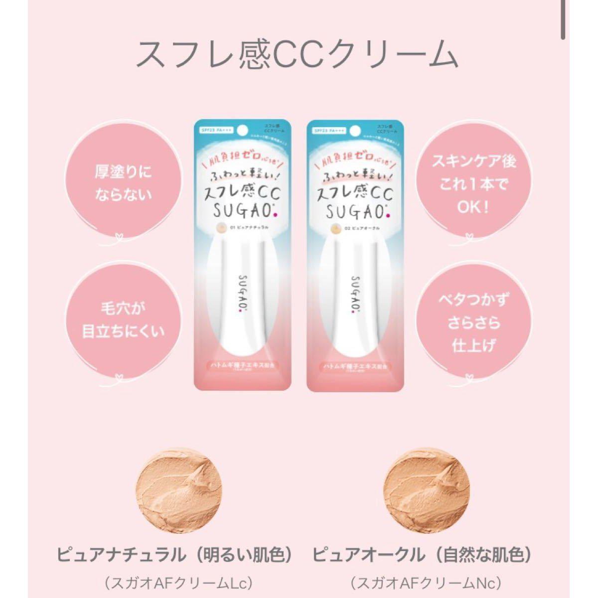 Sugao is a Japanese word meaning “bare face”. This product is a new generation CC cream that provides natural finish with light makeup feeling and less skin damage. Sugao series focuses on showing your bare skin nicer.