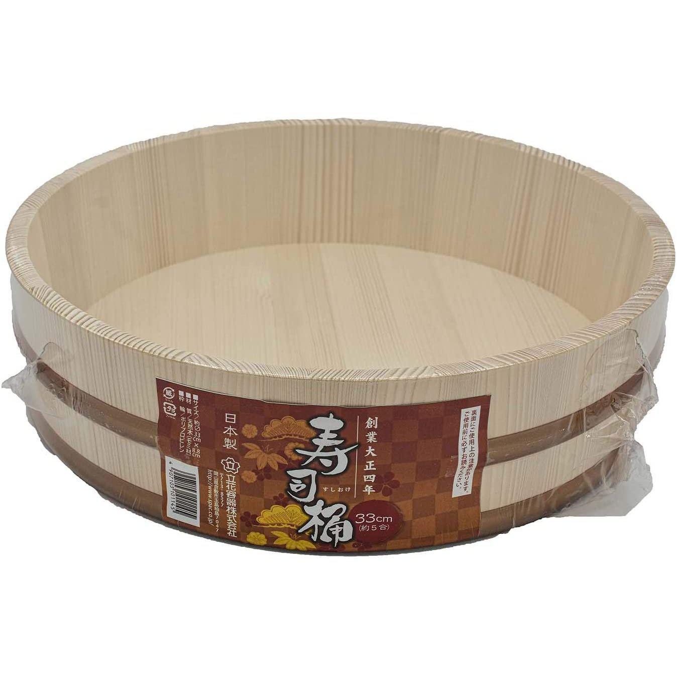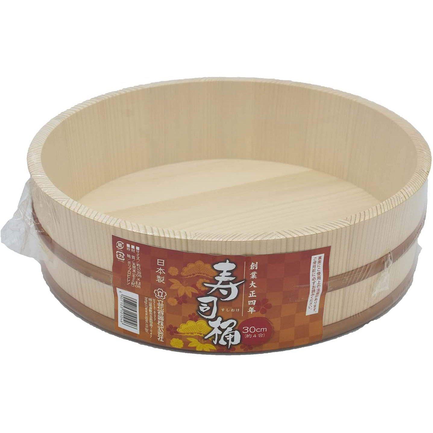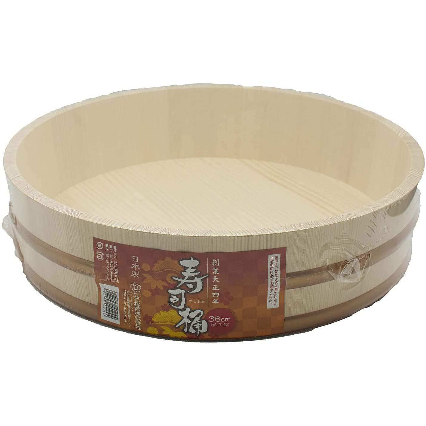 This wooden hangiri bowl is made of Japanese fir (Abies firma) and comes in three different sizes; 30 cm (for 4 servings), 33 cm (for 5 servings) and 36 cm (for 7 servings).