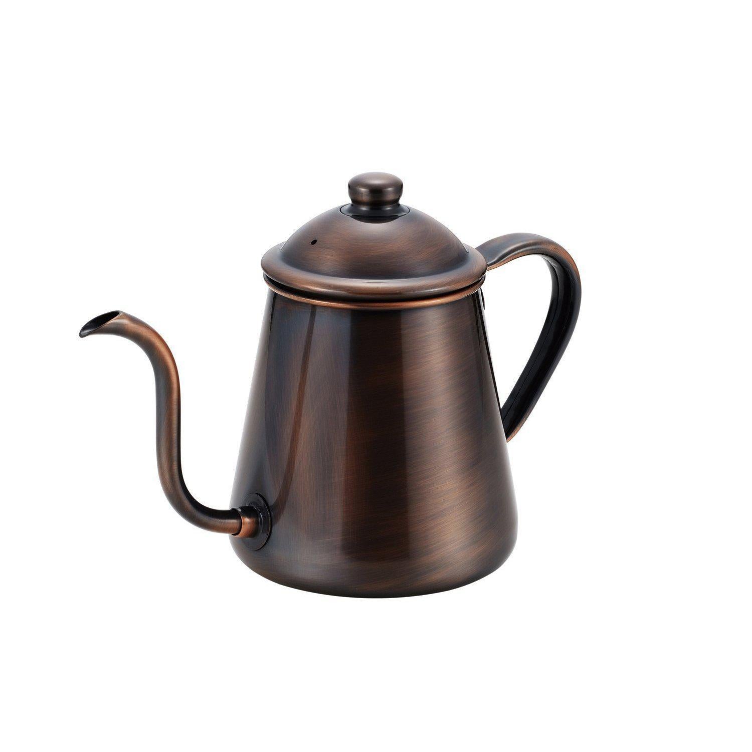 The Takahiro Coffee Drip Pot Bronze is a superior pouring kettle shaped with durable 18-8 stainless steel by craftsmen in Japan.