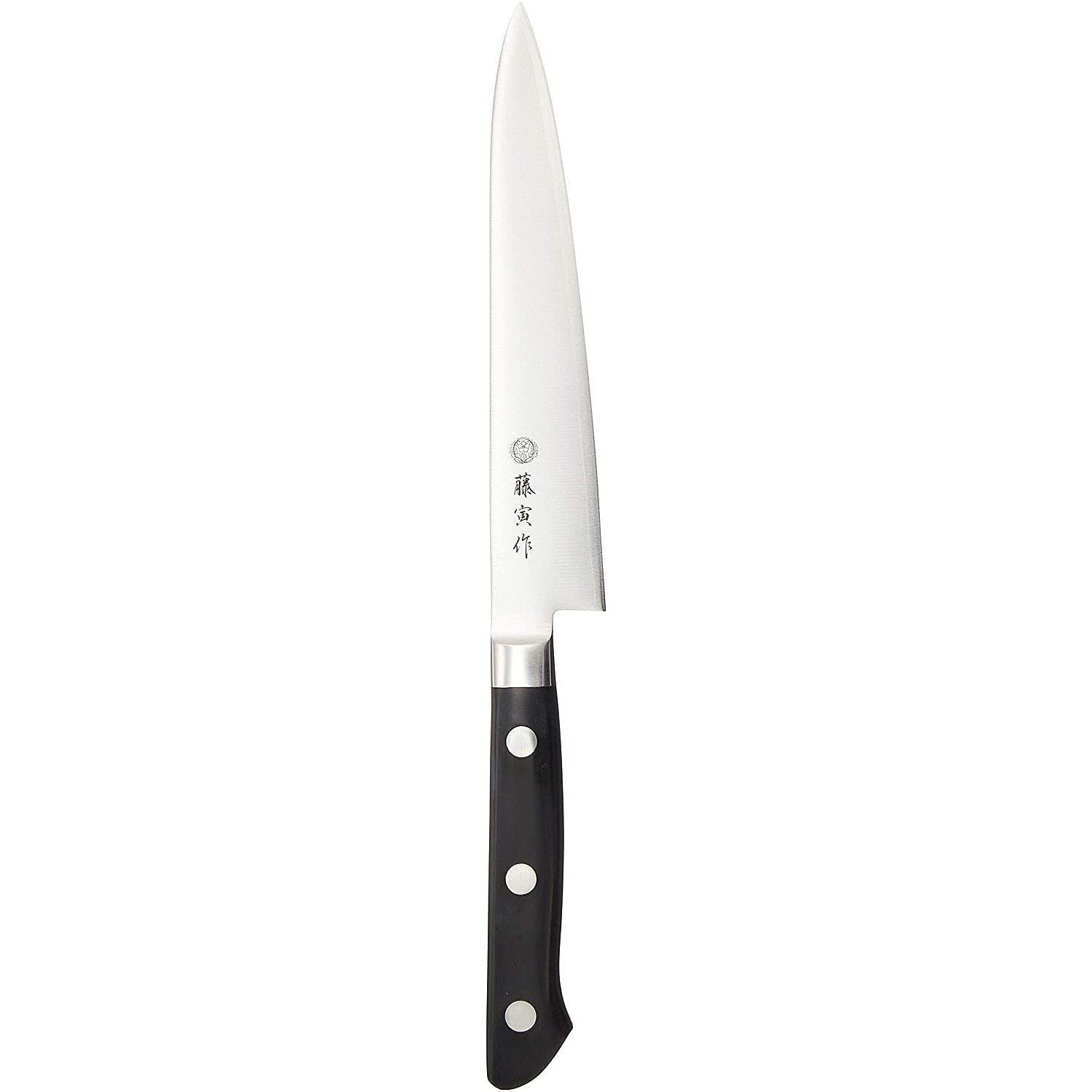 The Tojiro Fujitora Petty Knife is made of a triple-layered DP Cobalt Alloy which is suitable for cutting anything from the skin of fruits and vegetables to hard meats and fishes.