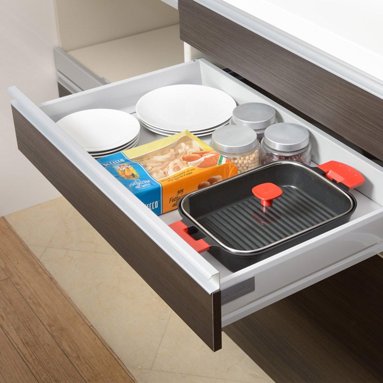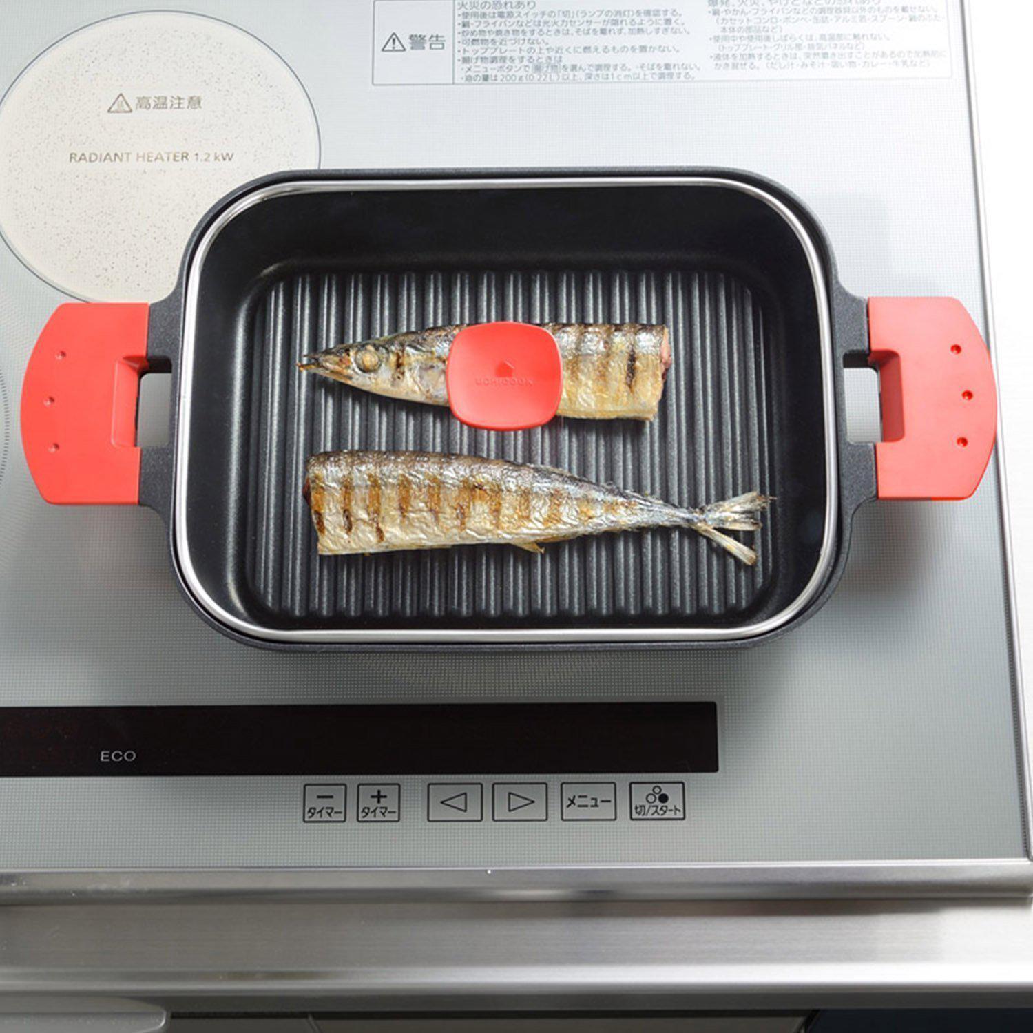 The Steam Grill can be used over direct flame, IH, or any other source of high-heat and features stay-cool handles.