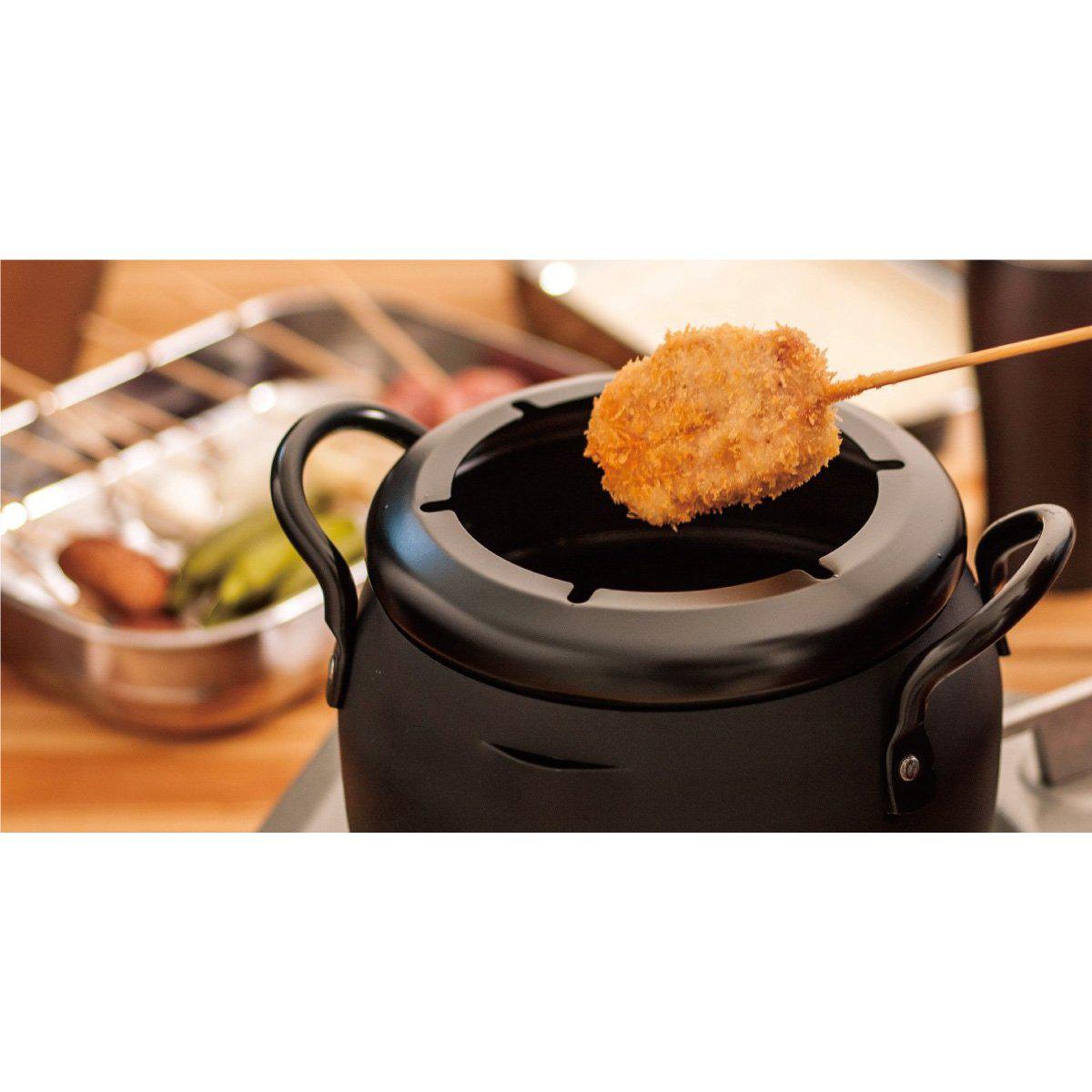 This Wahei Freiz Deep Frying Pan is made of iron and has been designed for cooking kushikatsu or Japanese deep-fried skewers.