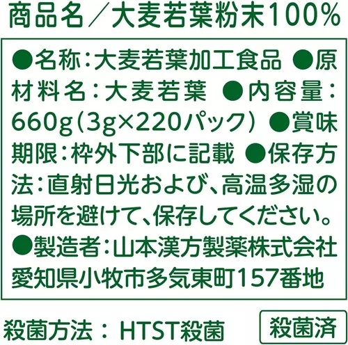 Yamamoto Kanpo Young Barley Leaves 100% Aojiru Green Powder Juice – 220 Packets (3g Each)