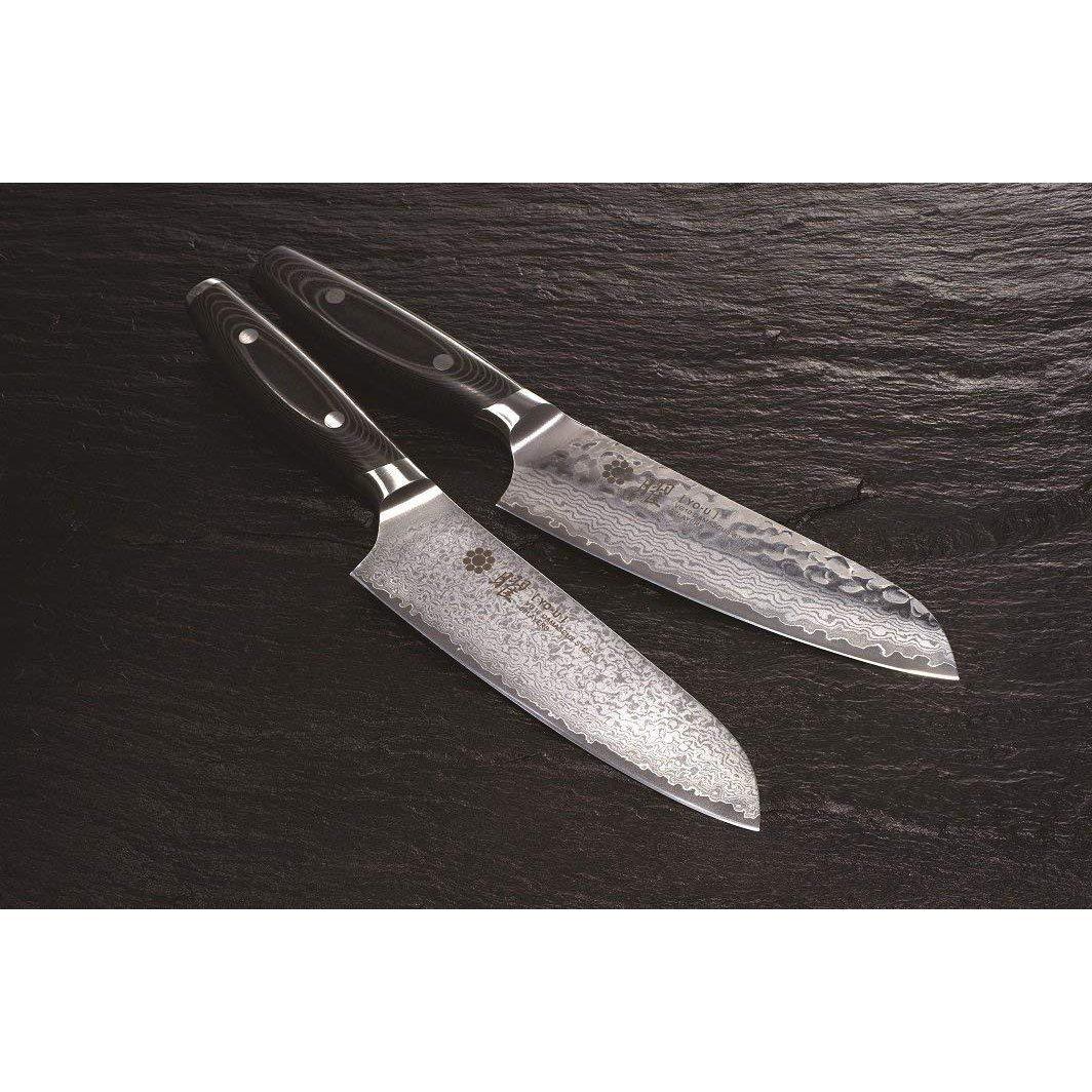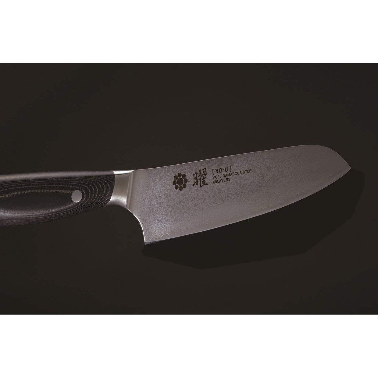 The Yaxell YO-U Santoku Knife features a high quality blade made of VG-10 Damascus stainless steel for extra durability, hardness and sharpness.